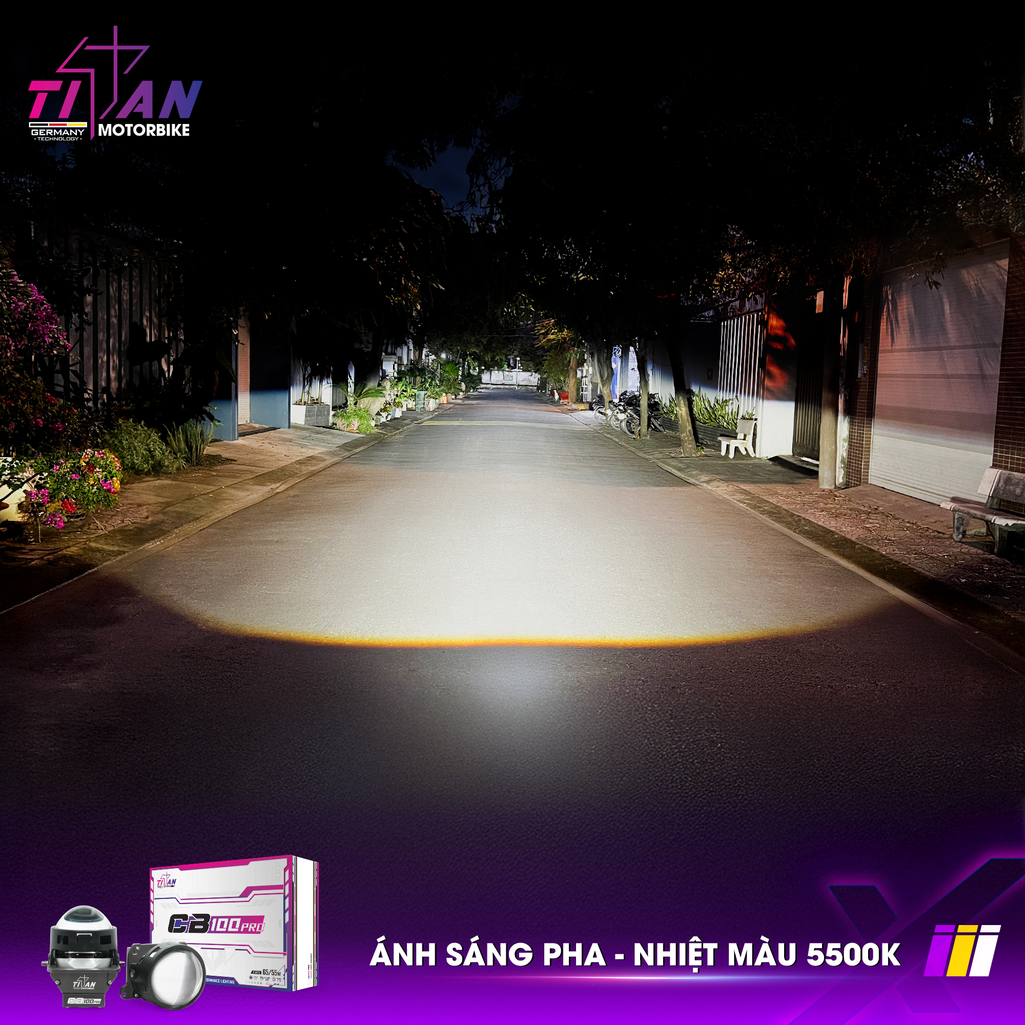 Bi LED Titan Moto CB100 Pro được trang bị lens 3.0 inch, lắp đặt như zin, dễ dàng tương thích với nhiều dòng xe, kể cả những mẫu có chóa đèn hẹp. Thiết kế tối ưu giúp ánh sáng thoát ra đồng đều cả trên lẫn dưới, mang lại khả năng chiếu sáng tối ưu và trải nghiệm lái an toàn, rõ ràng trên mọi cung đường.