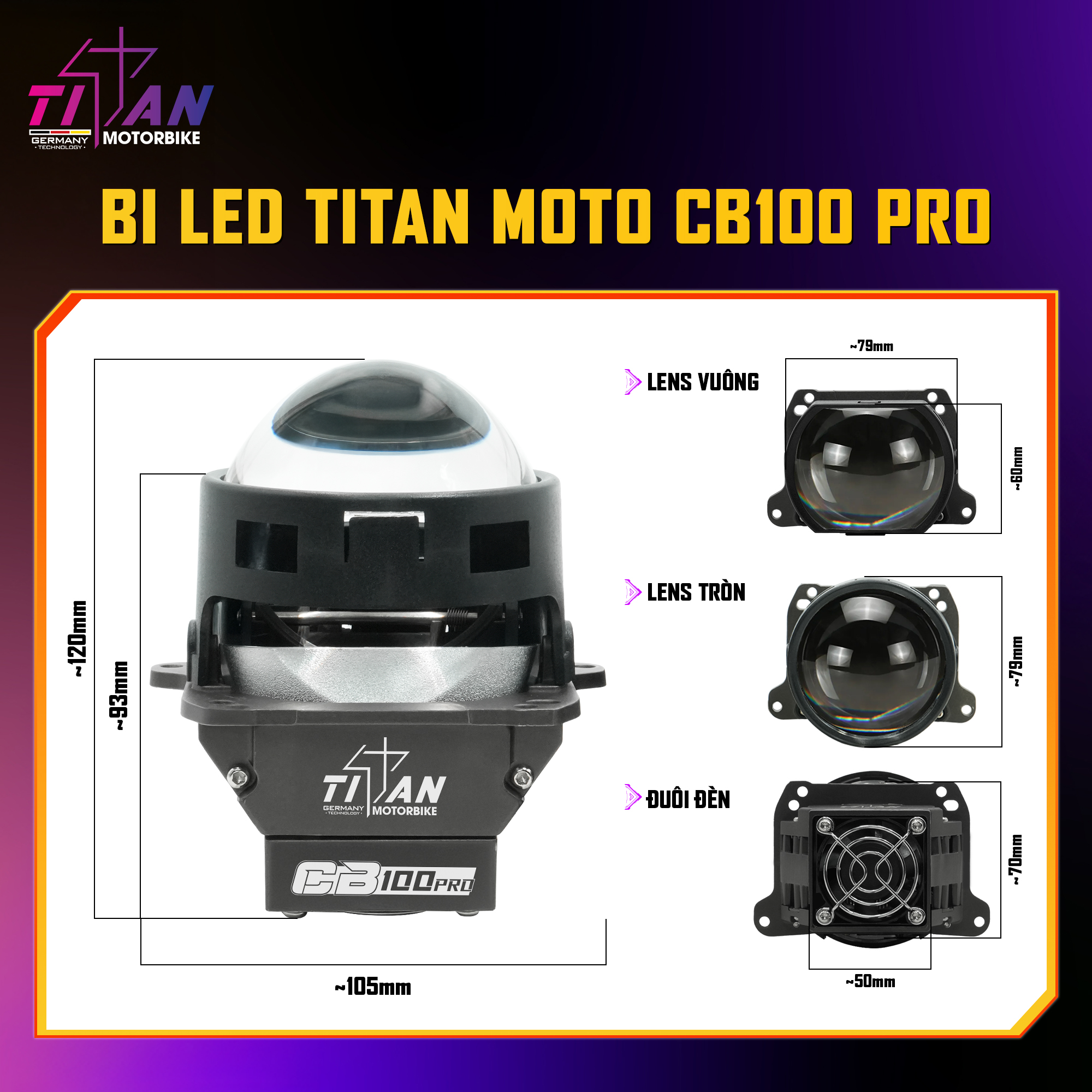 Bi LED Titan Moto CB100 Pro sở hữu lens 3.0 inch thiết kế theo chuẩn zin, mang đến khả năng lắp đặt gọn gàng, dễ dàng tương thích với nhiều dòng xe phổ biến trên thị trường, kể cả những mẫu xe có không gian chóa đèn khá hạn chế. Cấu trúc lens được nghiên cứu và tối ưu cẩn thận nhằm kiểm soát luồng sáng một cách chính xác, giúp dải sáng phân bổ đồng đều, mượt mà giữa vùng chiếu gần và chiếu xa.