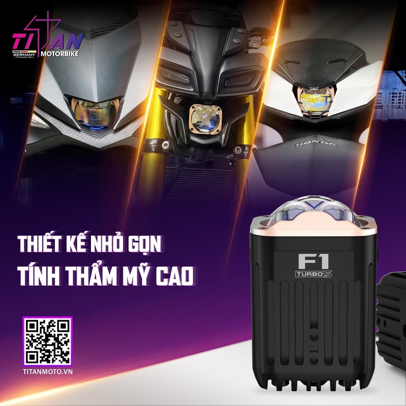 Titan Moto F1 Turbo S gây ấn tượng với thiết kế thể thao, góc cạnh mạnh mẽ nhưng vẫn giữ kích thước nhỏ gọn. Thân đèn được chế tạo từ nhôm cao cấp, mang lại độ cứng cáp và khả năng chịu va đập tốt trong quá trình sử dụng. Kiểu dáng tối ưu giúp sản phẩm dễ dàng lắp đặt trên nhiều dòng xe mà không ảnh hưởng đến tổng thể thẩm mỹ. Các chi tiết hoàn thiện tỉ mỉ tạo nên vẻ ngoài hiện đại, đậm chất công nghệ. Nhờ sự kết hợp giữa thiết kế và công năng, F1 Turbo S vừa đẹp mắt vừa linh hoạt trong quá trình nâng cấp.