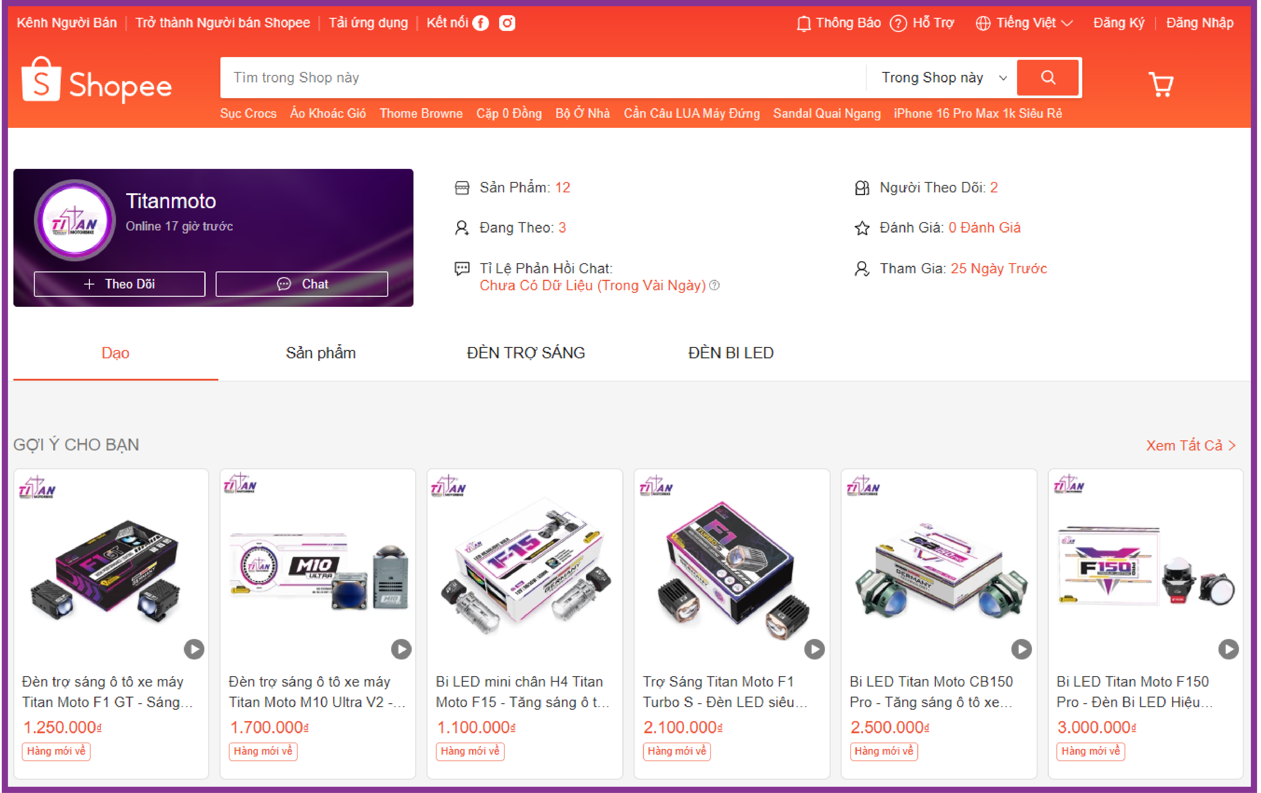 Trong thời đại số hóa, việc mua sắm online đã trở thành xu hướng tất yếu, đặc biệt với các tín đồ đam mê độ xe và nâng cấp ánh sáng. Titan Moto - thương hiệu đèn xe máy cao cấp hàng đầu Việt Nam hiện đã mở rộng hệ thống bán hàng chính hãng trên nhiều nền tảng trực tuyến, giúp khách hàng dễ dàng tiếp cận và sở hữu sản phẩm chất lượng một cách nhanh chóng, an toàn và tiện lợi. Dưới đây là các kênh mua hàng online chính hãng của Titan Moto mà bạn nên biết để luôn an tâm khi chọn lựa và trải nghiệm sản phẩm chính hãng 100%.