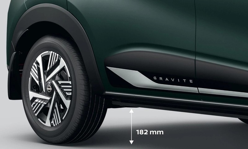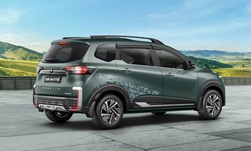 Ở khu vực thân xe, Gravite sử dụng bộ mâm hợp kim thiết kế mới cùng bảng màu ngoại thất đa dạng. Đáng chú ý là tùy chọn màu xanh lục lấy cảm hứng từ Nissan Patrol, giúp mẫu xe tăng thêm chất SUV trong phân khúc MPV phổ thông. Phía sau, cản sau được tạo hình lại gọn gàng hơn, kết hợp dòng chữ “Gravite” dập nổi trên nắp cốp nhằm tăng khả năng nhận diện.