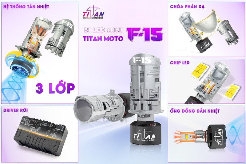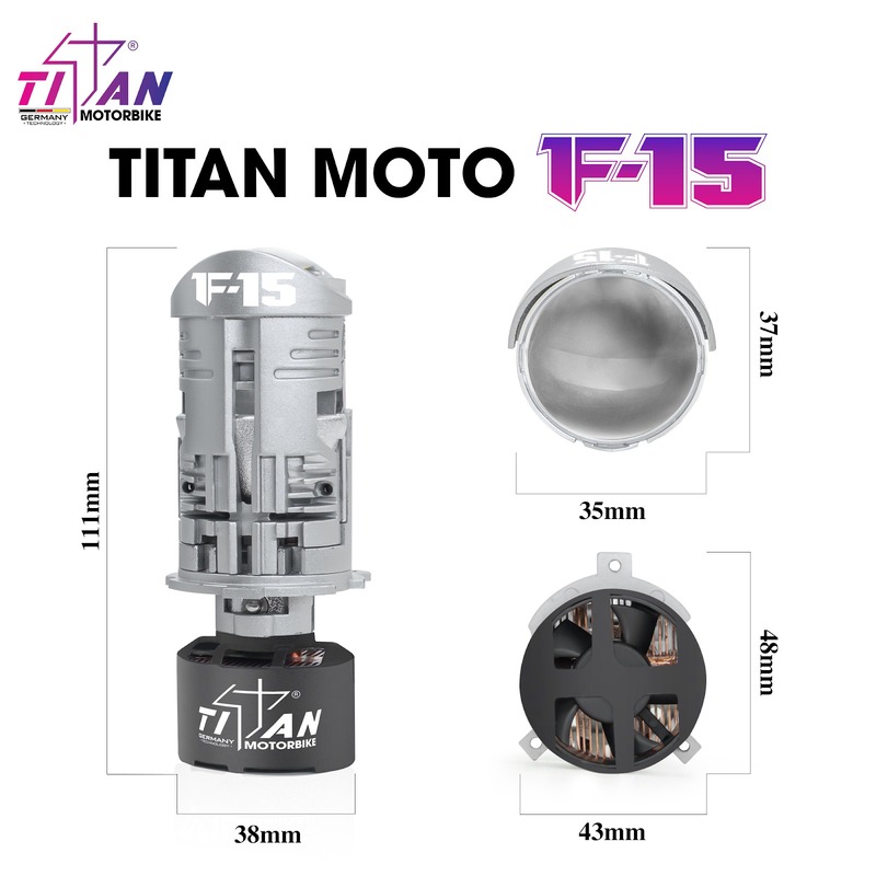 Bi LED Mini Titan Moto F15 phù hợp cho người dùng muốn cải thiện ánh sáng tiện lợi, nhanh chóng với chi phí phù hợp với túi tiền. Sản phẩm sử dụng chuẩn bi LED mini H4, lắp đặt thay thế trực tiếp như zin, không cần cắt khoét hay can thiệp chóa đèn phức tạp, đảm bảo không ảnh hưởng đến đăng kiểm. Với kích thước body chỉ 111 × 48 × 43mm, F15 dễ dàng tương thích với nhiều dòng xe máy và ô tô, đặc biệt phù hợp cho những xe có không gian chóa đèn hạn chế.