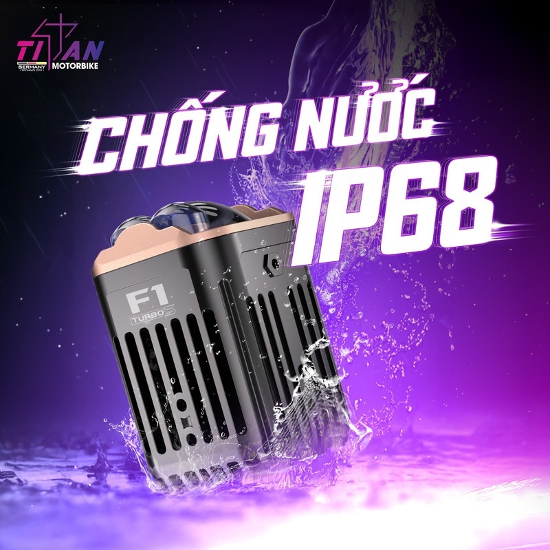 Đèn trợ sáng Titan Moto F1 Turbo S được thiết kế với khả năng kháng nước và kháng bụi đạt chuẩn IP68. Đèn có thể hoạt động ổn định ngay cả khi di chuyển dưới mưa lớn hoặc trong môi trường nhiều bụi bẩn. Điều này giúp F1 Turbo S không chỉ đảm bảo độ bền mà còn mang lại sự yên tâm cho người dùng trong mọi điều kiện thời tiết.