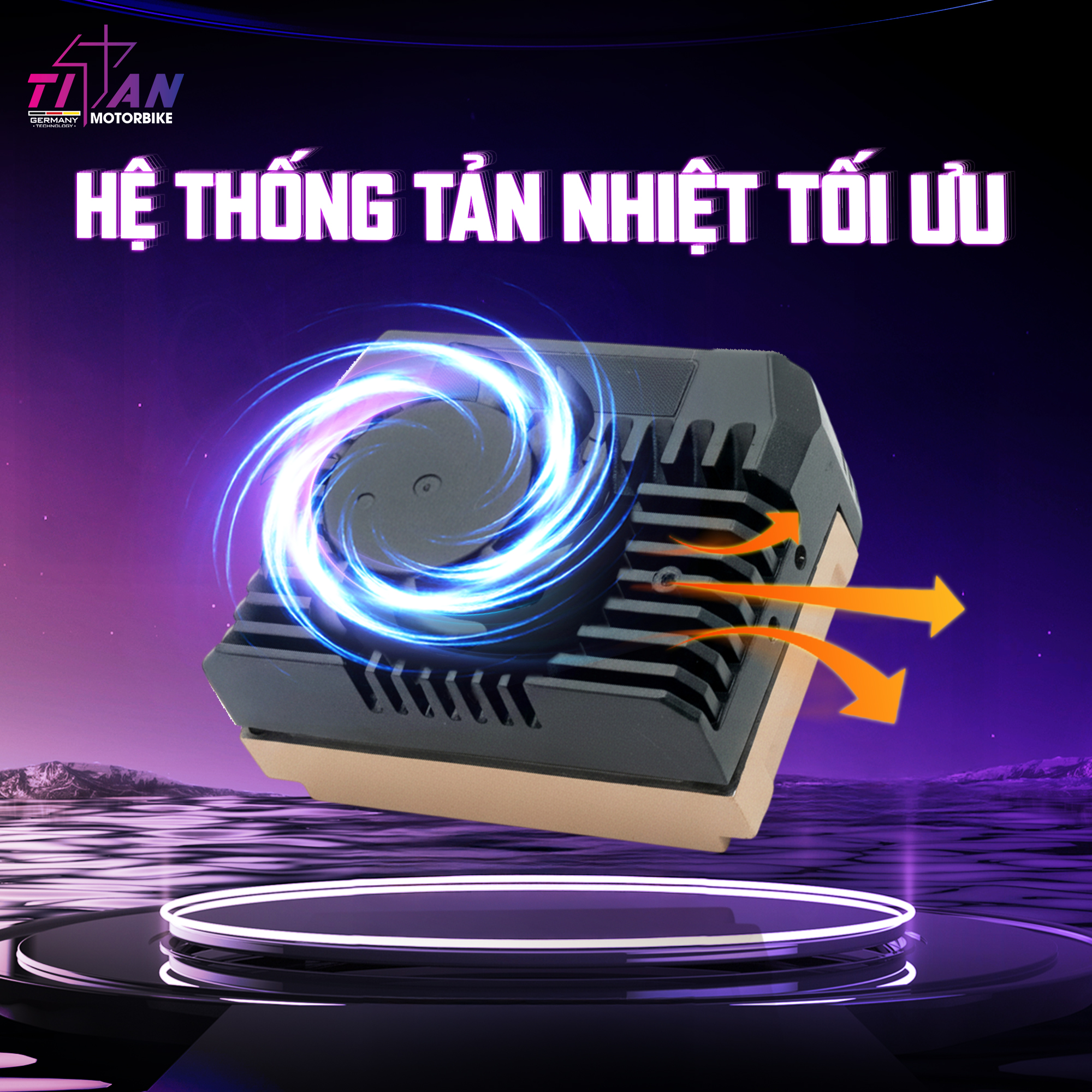 Được đầu tư kỹ lưỡng về hệ thống tản nhiệt, Titan Moto F2 Zero GT gây ấn tượng với khả năng kiểm soát nhiệt tối ưu trong suốt quá trình vận hành. Trang bị quạt làm mát hiệu suất cao kết hợp cùng hệ thống rãnh thoát nhiệt được thiết kế chuẩn xác trên thân đèn, sản phẩm tạo nên luồng đối lưu không khí liên tục, giúp giải nhiệt nhanh và hiệu quả. Nhờ đó, nhiệt độ luôn được duy trì ổn định, đảm bảo hiệu năng chiếu sáng bền bỉ, hạn chế suy giảm ánh sáng và kéo dài tuổi thọ cho toàn bộ hệ thống.