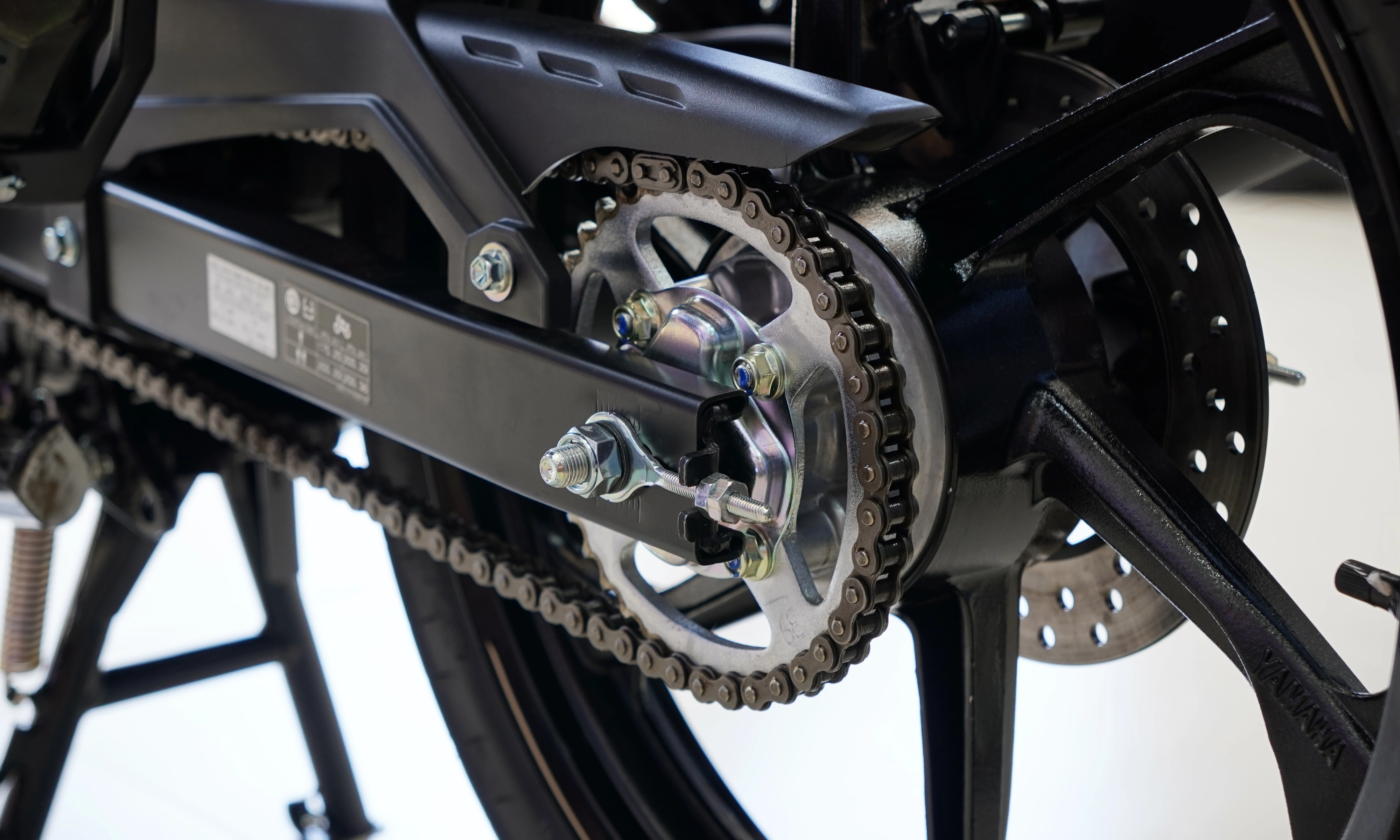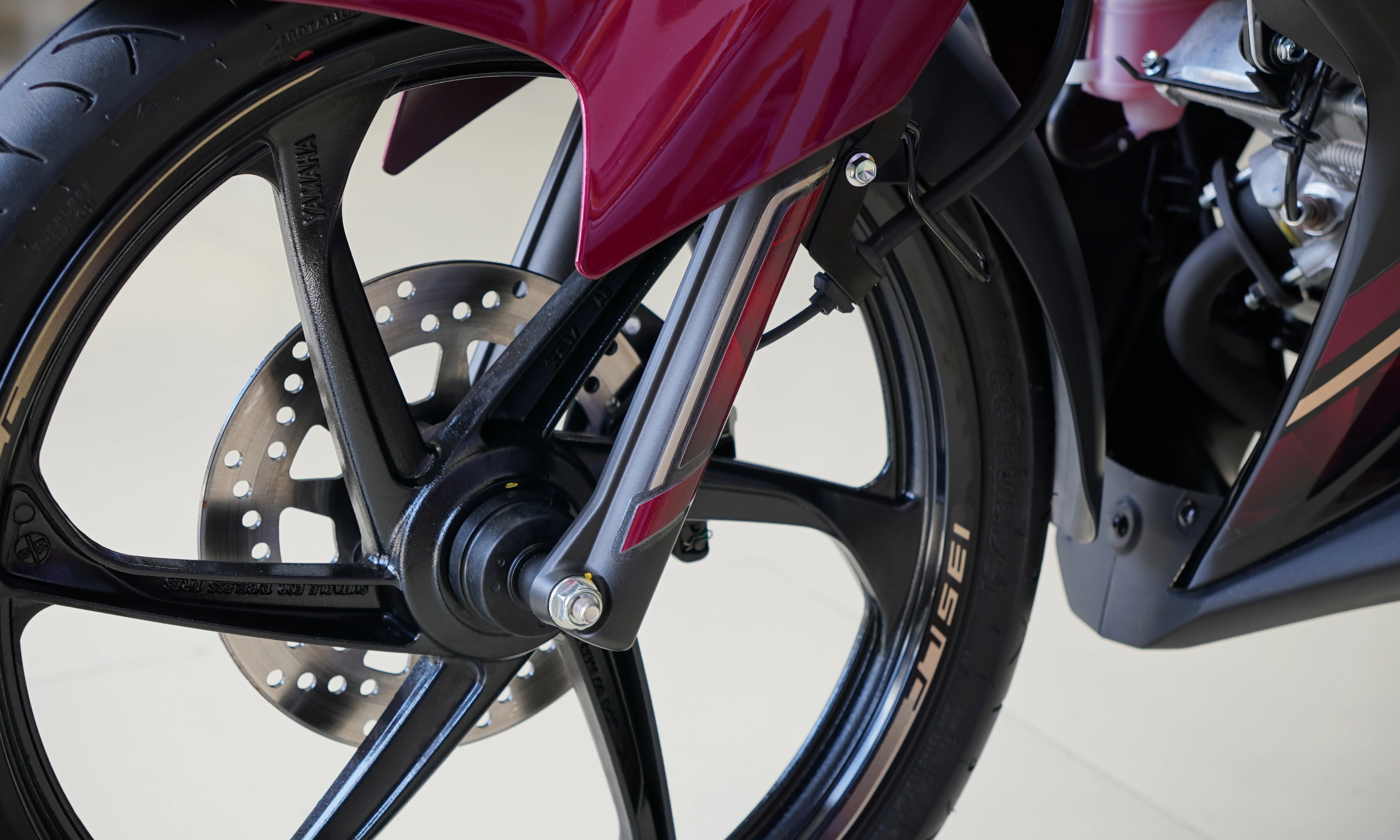 Mẫu xe nhập khẩu được trang bị hệ thống treo trước dạng ống lồng cùng giảm xóc sau lò xo trụ đơn có khả năng điều chỉnh, mang lại cảm giác vận hành ổn định và linh hoạt trong nhiều điều kiện sử dụng. Chiều cao yên 775 mm, thiết kế phân tầng nhẹ, kết hợp với phần đuôi vuốt nhọn tạo nên dáng vẻ thể thao, gọn gàng và đầy cá tính. Xe sử dụng mâm 17 inch cho cả hai bánh, giúp tổng thể cân đối và đậm chất underbone truyền thống.