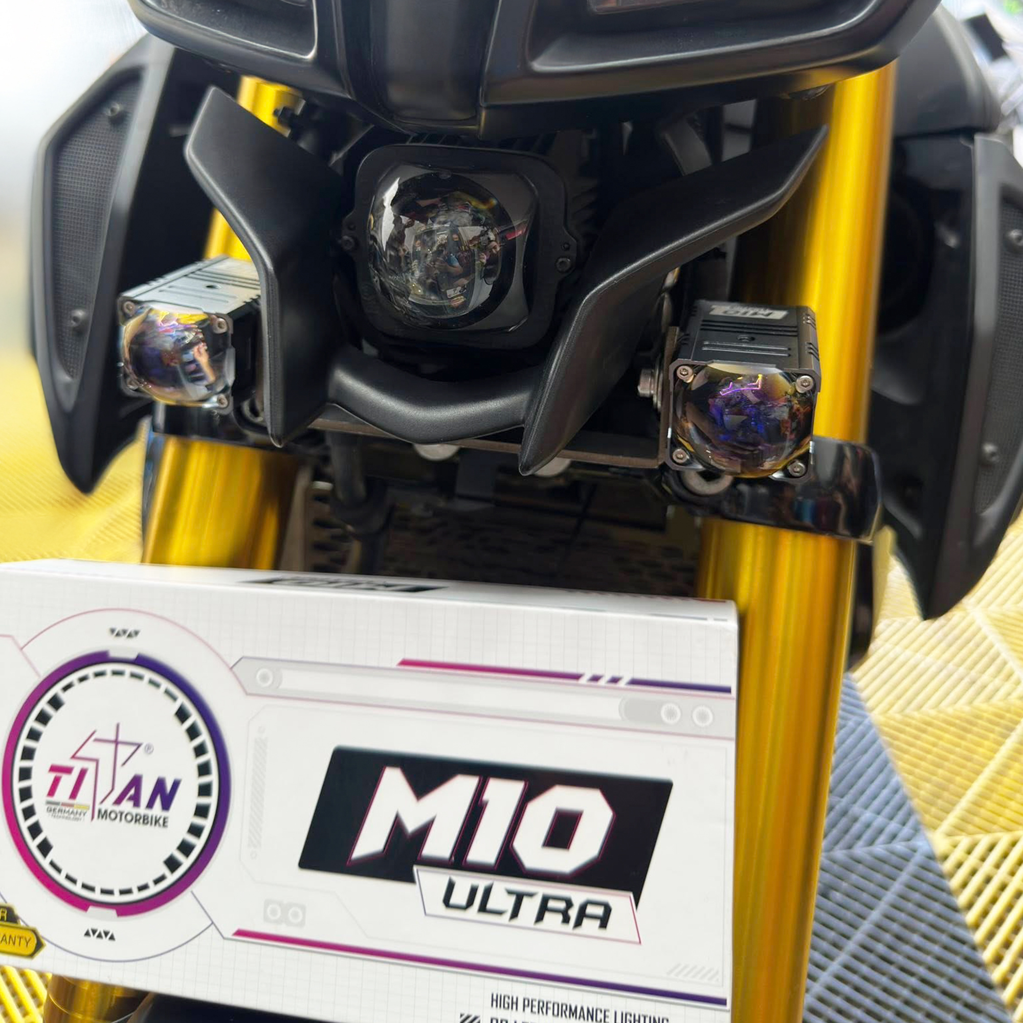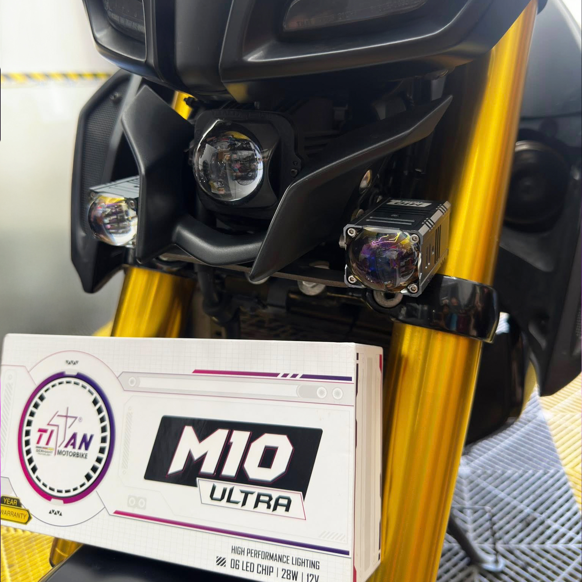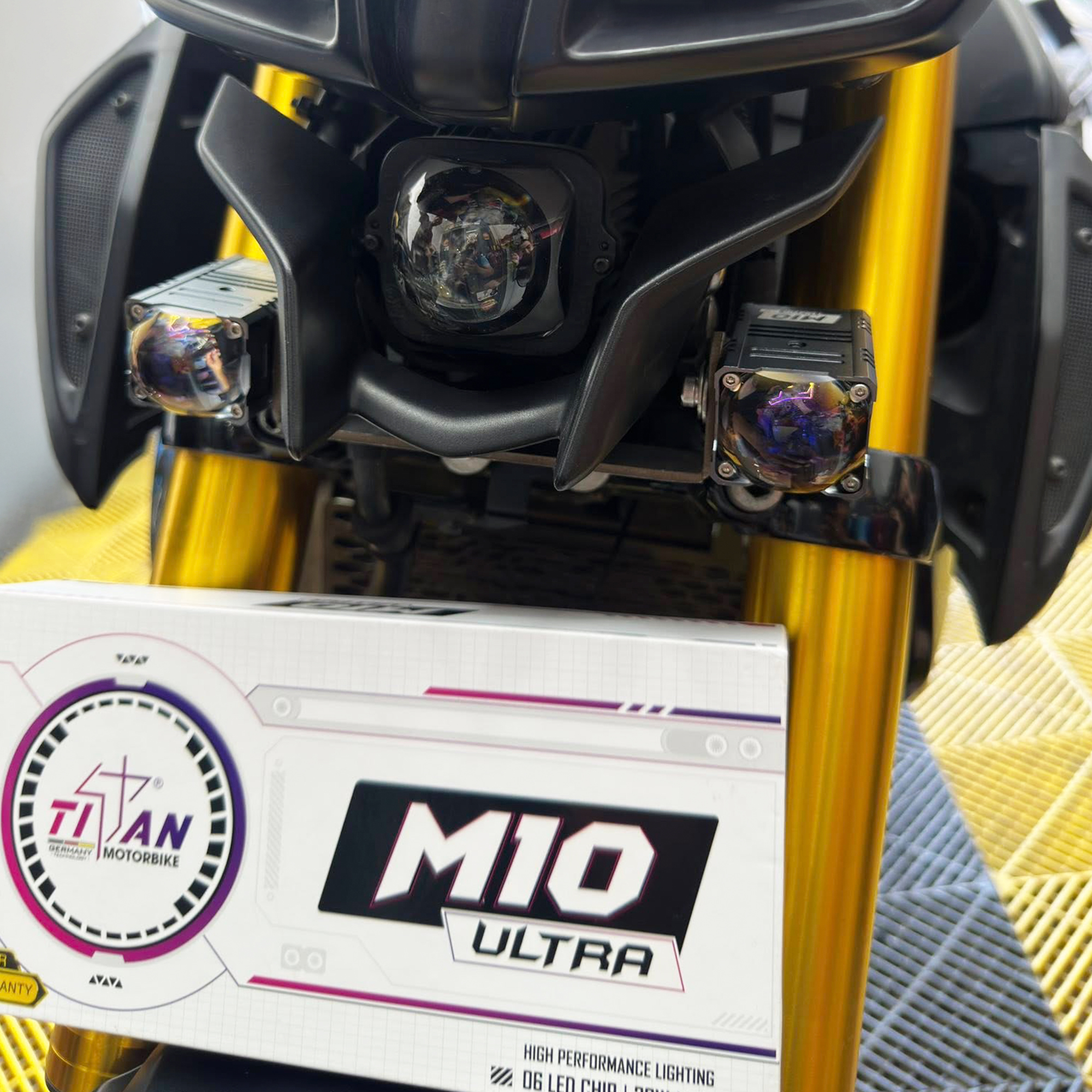 Dù Yamaha MT-15 vốn đã nổi bật với thiết kế hiện đại, khối động cơ mạnh mẽ và phong thái thể thao đặc trưng, nhưng hệ thống chiếu sáng nguyên bản vẫn chưa thực sự đáp ứng tốt trong những điều kiện di chuyển phức tạp hay đêm tối. Chính vì vậy, sau khi tìm hiểu kỹ lưỡng và mong muốn nâng cấp trải nghiệm lái an toàn hơn, chủ xe đã lựa chọn đèn trợ sáng Titan Moto M10 Ultra V2 – giải pháp chiếu sáng toàn diện giúp mở rộng tầm nhìn, tăng độ sáng vượt trội và nâng tầm diện mạo cho chiếc MT-15.